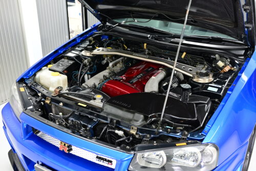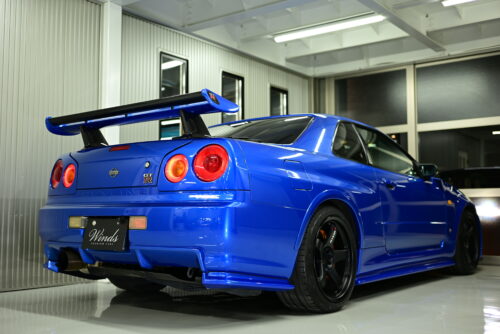 BNR34型スカイラインGT-R、ベイサイドブルーの車両です。